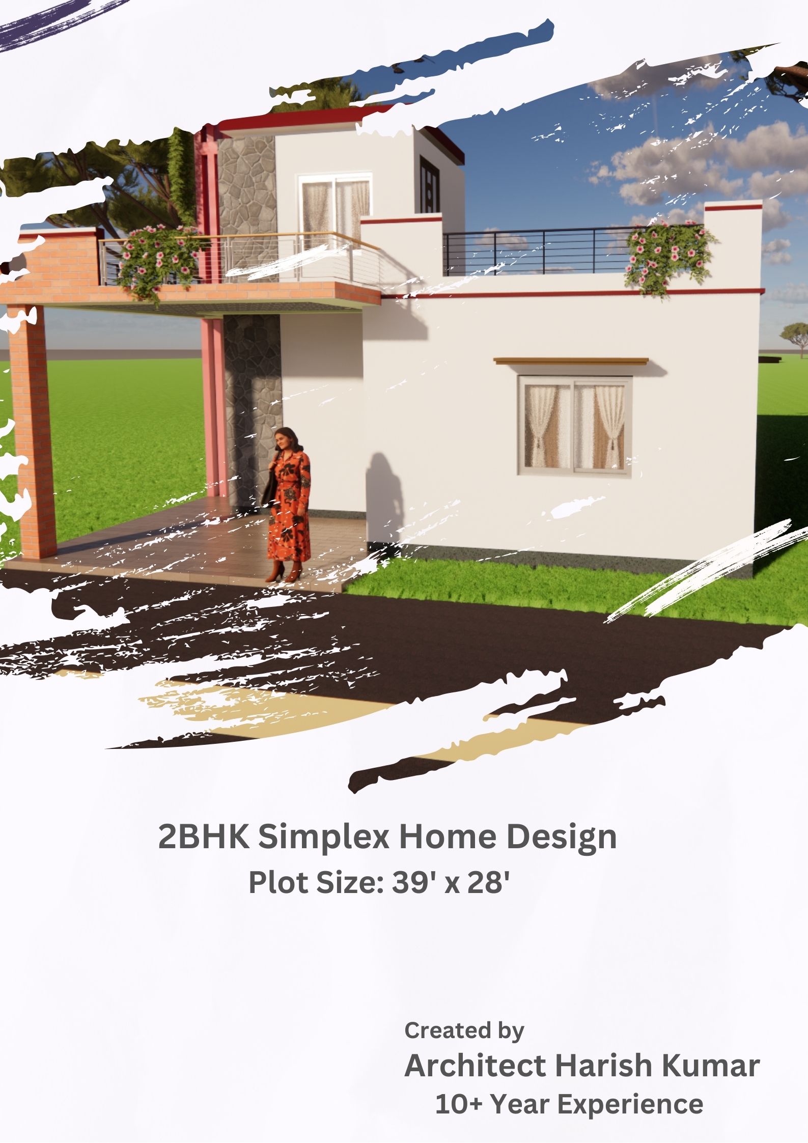 This detailed architectural eBook presents a professionally structured design analysis of a 2BHK residence planned for a 39’×28’ plot. With a built-up area of approximately 990 sq.ft, the layout offers a balanced combination of comfort, circulation efficiency, and structural alignment.