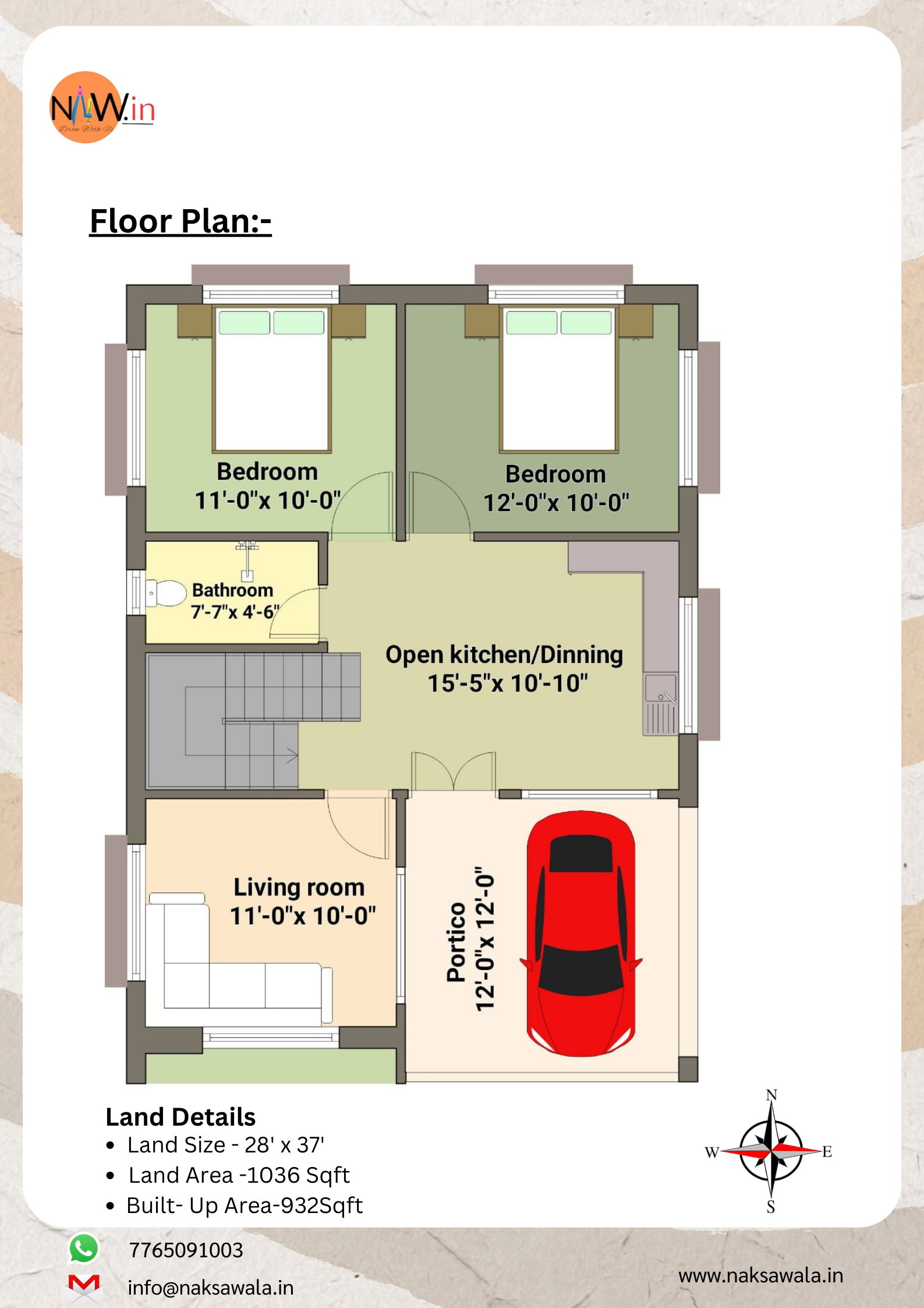 28’×37’ Compact 2BHK Residence | 932 Sq.ft Built-up