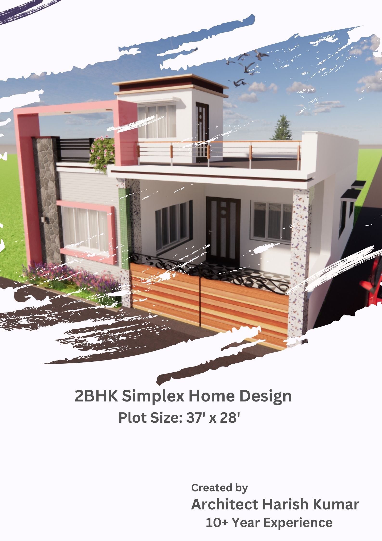 This detailed architectural eBook presents a professionally structured design analysis of a modern 2BHK residence planned for a 28’×37’ plot. With a built-up area of approximately 932 sq.ft, the layout integrates intelligent zoning, efficient circulation, and future vertical expansion readiness.