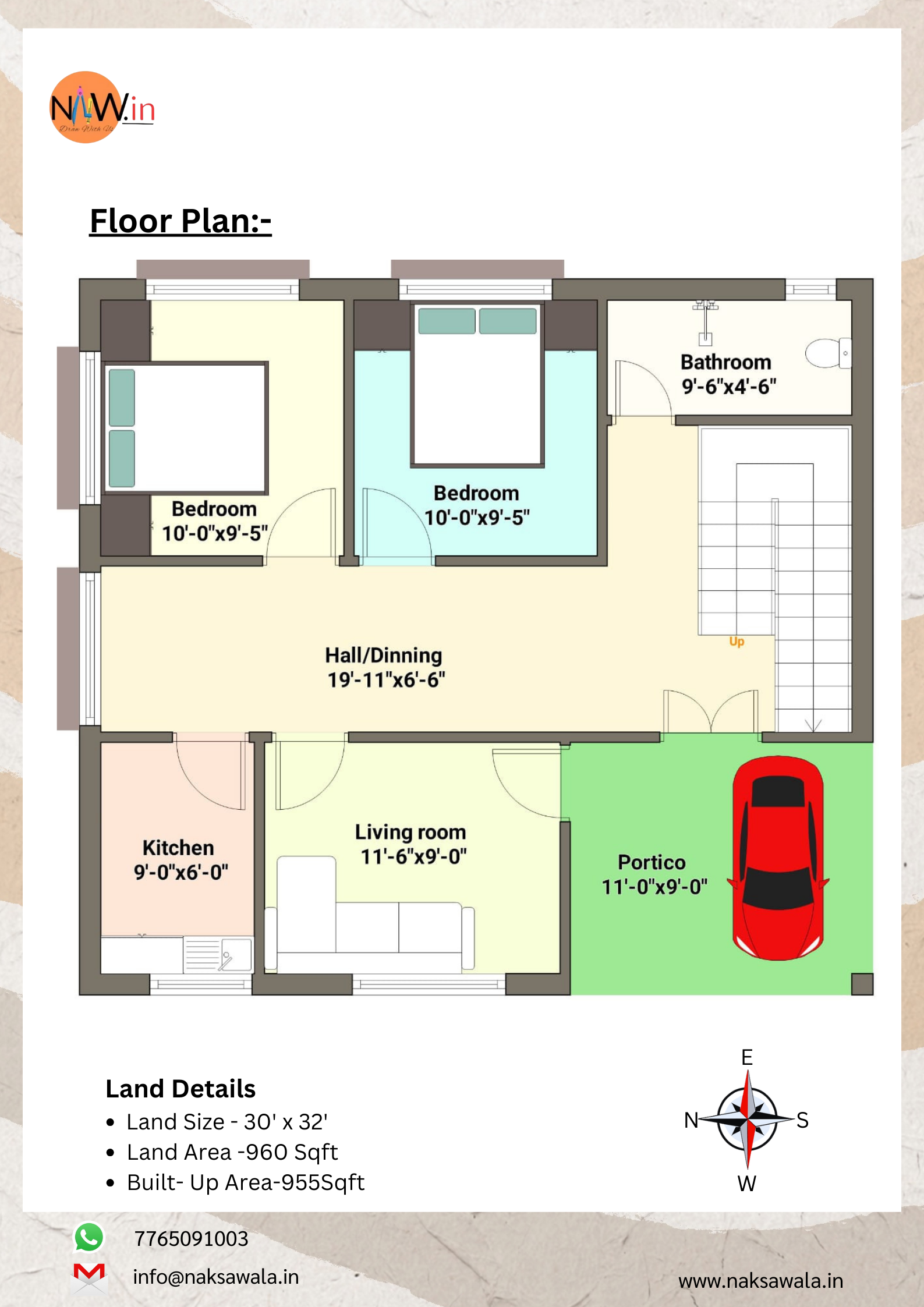 955 Sq.ft Built-up | Smart Zoning with Car Portico & Internal Staircase